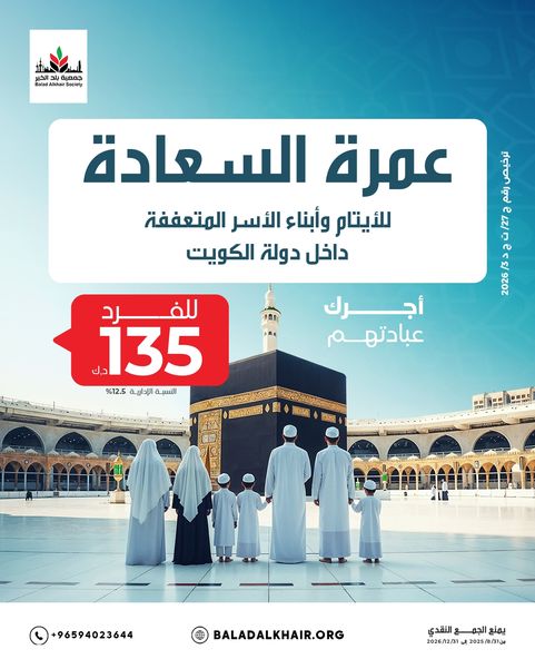 عمرة السعادة - للأيتام والأسر المتعففة داخل الكويت