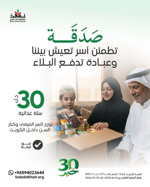 سلة غذائية لأسر المرضى وكبار السن داخل الكويت – تجوز الزكاة