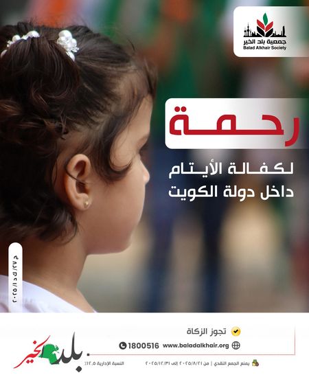 تبرعكم يمنح اليتيم حياة كريمة ورعاية مستمرة من خلال كفالة شهرية بمبلغ 30 د.ك أو سنوية بمبلغ 360 د.ك.